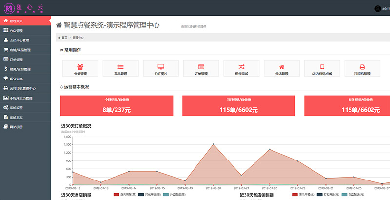 - 随心云智慧餐饮是一款专业适用于餐饮行业的点餐管理软件,即适用【单店】也适用【连锁加盟店】,能实现扫码点餐、外卖点餐、后台点餐、连锁多门店智能定位等功能,集拉客系统、电子优惠券、积分商城和充值优惠等多种营销功能,解决了从外卖、餐厅餐桌到线上营销、餐厅服务、厨房打印等的智能化管理流程,助力餐饮商家全面提升营业额!